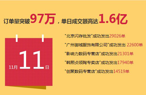 双十一当天,截至上午11:00,管家婆云ERP的用户成交量达到了4600万,12:00-14:00订单量上升到44054单,全天下来,最后的统计结果是:通过管家婆云ERP处理的订单总量为97万单,成交总金额...